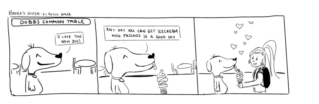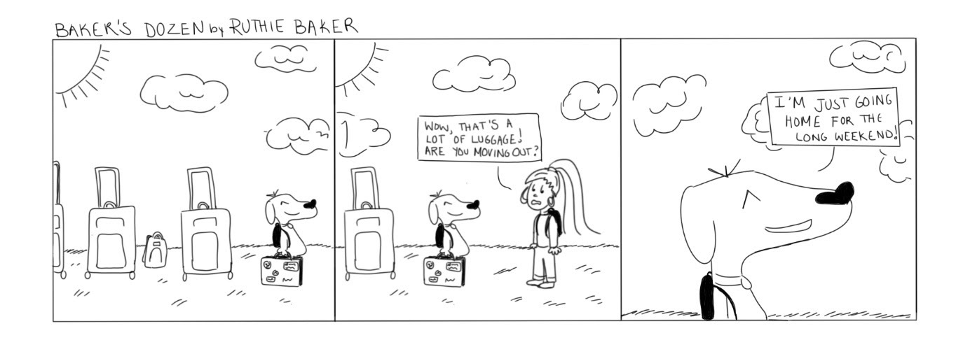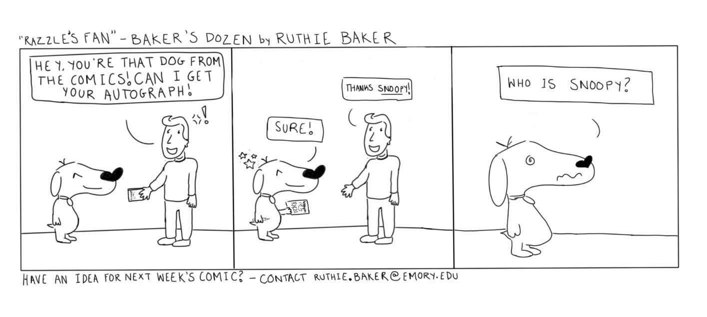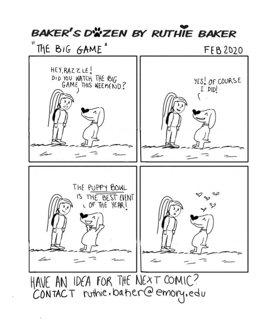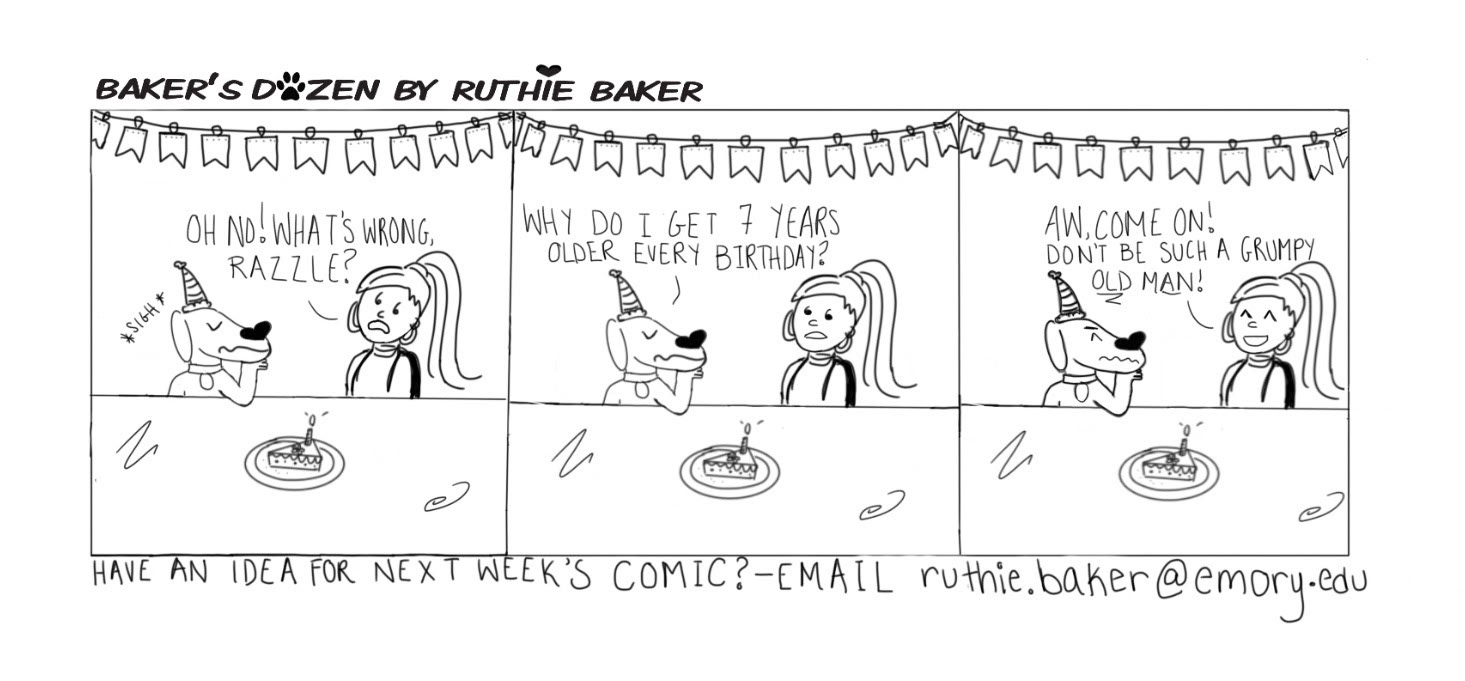 Selections from the Baker's Dozen comic strip written for the Emory University Wheel Newspaper. 2020-2021.